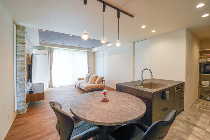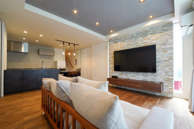 奥様:天然石のアクセント壁を聞いた時、初めは「石って貼れるの!?」と思ったんですが、凄くいい感じに仕上がっていて。