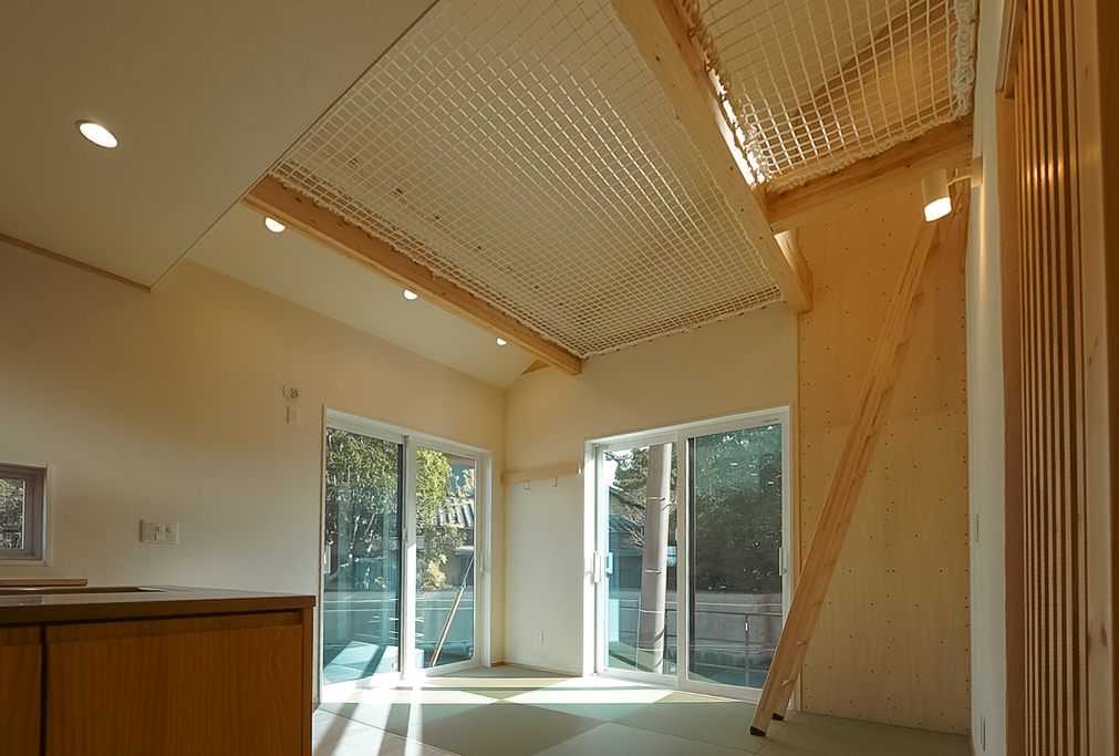 ボルダリングやロフトて遊び心を取り入れ、暮らしそのものを楽しめる住まい。廊下を省いたコンパクトな設計で、空間を無駄なく活用しています。